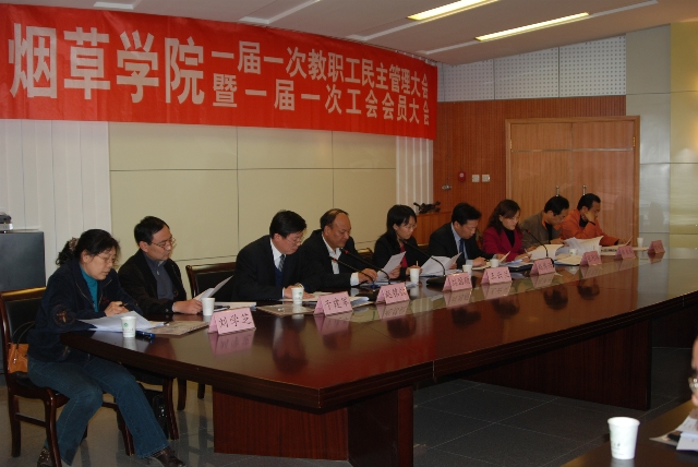 召开一届一次教职工民主管理大会暨一届一次工会会员大会的批复》,大会听取了院长刘国顺同志所作的院长工作报告。他在报告中总结回顾了学院2008年各项工作的进展情况,同时安排部署了2009年学院的重点工作,一是进一步落实国家烟草专卖局战略框架协议,努力创建研究型学院;二是加大学科建设力度,不断提升学科建设水平;三是大力实施“人才强院”战略,加强师资队伍建设;四是积极推进教学改革,全面提高本科生培养质量;五是继续加强研究生教育,努力培养高素质创新人才;六是积极做好重大项目的论证、筛选与申报工作,不断提升烟草科技自主创新能力;七是加强科研平台条件建设,积极扩大对外交流与合作;八是加强烟草科技与经济的结合,积极推进科技成果的转化;九是坚持育人为本,全面提升大学生的创新创业能力;十是坚持科学发展,创新体制机制,积极推进依法治院。