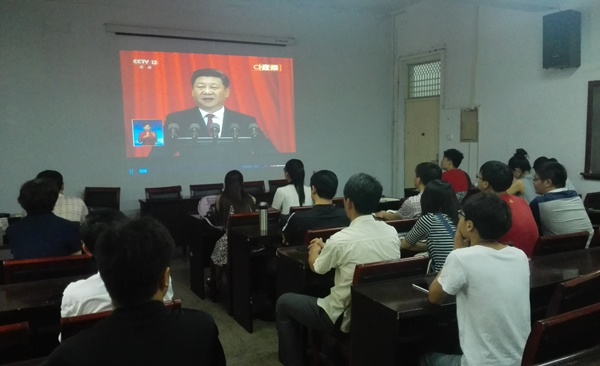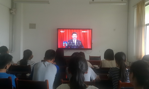 7月1日上午,德州扑克网页版 在文化路校区和龙子湖校区分别组织师生收看“中国共产党成立95周年庆祝大会”现场直播。学院党政领导同教师代表、研究生及本科生代表一起听取学习了习近平总书记的重要讲话。